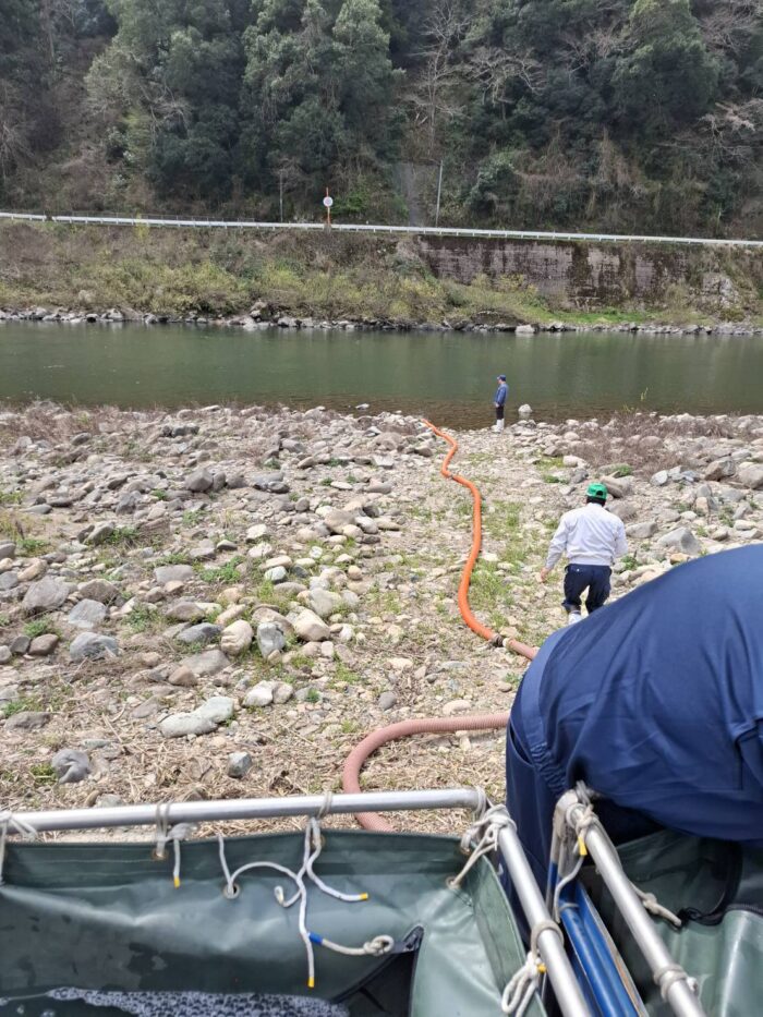 今年度、第1回目となる稚アユの放流を、3月30日に行いました。